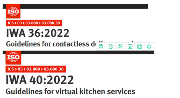 IWA 36:2022和IWA 40:2022邦际圭表项目认真人、中邦贸促会贸易行业委员会秘书长姚歆先容说,新冠疫情的暴发和伸张对人们的生涯体例和作为产孕育期影响,客观加快了宇宙消息化、数字化、摩登化的过程,胀动了科技升级协调、工业革新和供职更始的速率。正在2020年疫情暴发初期,为应对新冠肺炎疫情和保护黎民大家根基生涯,速捷反响市集与更始的需求,中邦贸促会贸易行业委员会正在凝练邦行家业实验的根蒂上,联结邦内联系机构和专家连忙研制并出台联系集团圭表。IWA 36:2022《无接触配送供职指南》和IWA 40:2022《虚拟厨房供职指南》邦际圭表提案区分源自中邦贸促会贸易行业委员会2020年颁发并实行的T/CCPITCSC 042-2020《无接触配送供职楷模》集团圭表和T/CCPITCSC 045-2020《共享厨房供职楷模》集团圭表,上述两项邦际圭表的依期颁发是中邦贸促会贸易行业委员会践行“集团圭表化+邦际圭表化”双驱生长的告捷样板。