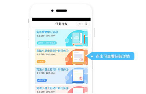 4、按请求已毕相应宪法进修职业,即可得胜打卡,已毕后可正在“职业打卡”板块中查看打卡记载。