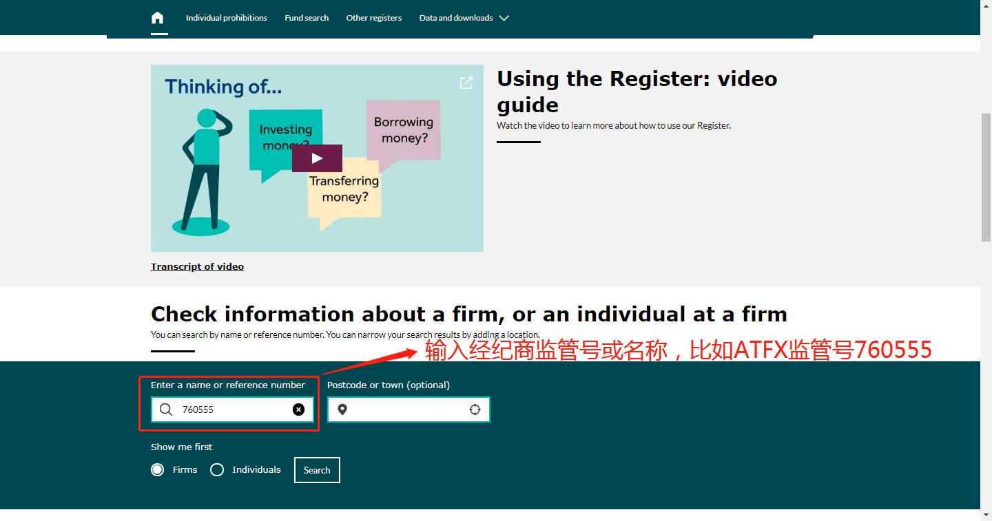 2、囚禁查问的征采框变更较大,能够说和旧版的十足差别。旧版囚禁查问界面的主体便是一个征采框,名称为“Search the Financial Services Register”,翻译为“征采注册的金融办事”。这句话本来较量难判辨,也存正在必然水平的歧义。改版后的页面变得愈加亲民和接地气,比似乎样的征采框,新的名称为:“Check information about a firm, or an individual at a firm”,翻译为“检查企业或者个体的闭联讯息”,这就要比旧版的名称容易判辨的众。除了这一中枢功用外,该页面另有其余的辅助功用,例如“How to use the Register(怎么应用注书页面)”、“Using the Register: video guide(视频版教程)”、“Find financial services in your area(征采你身边的金融办事)”等等。