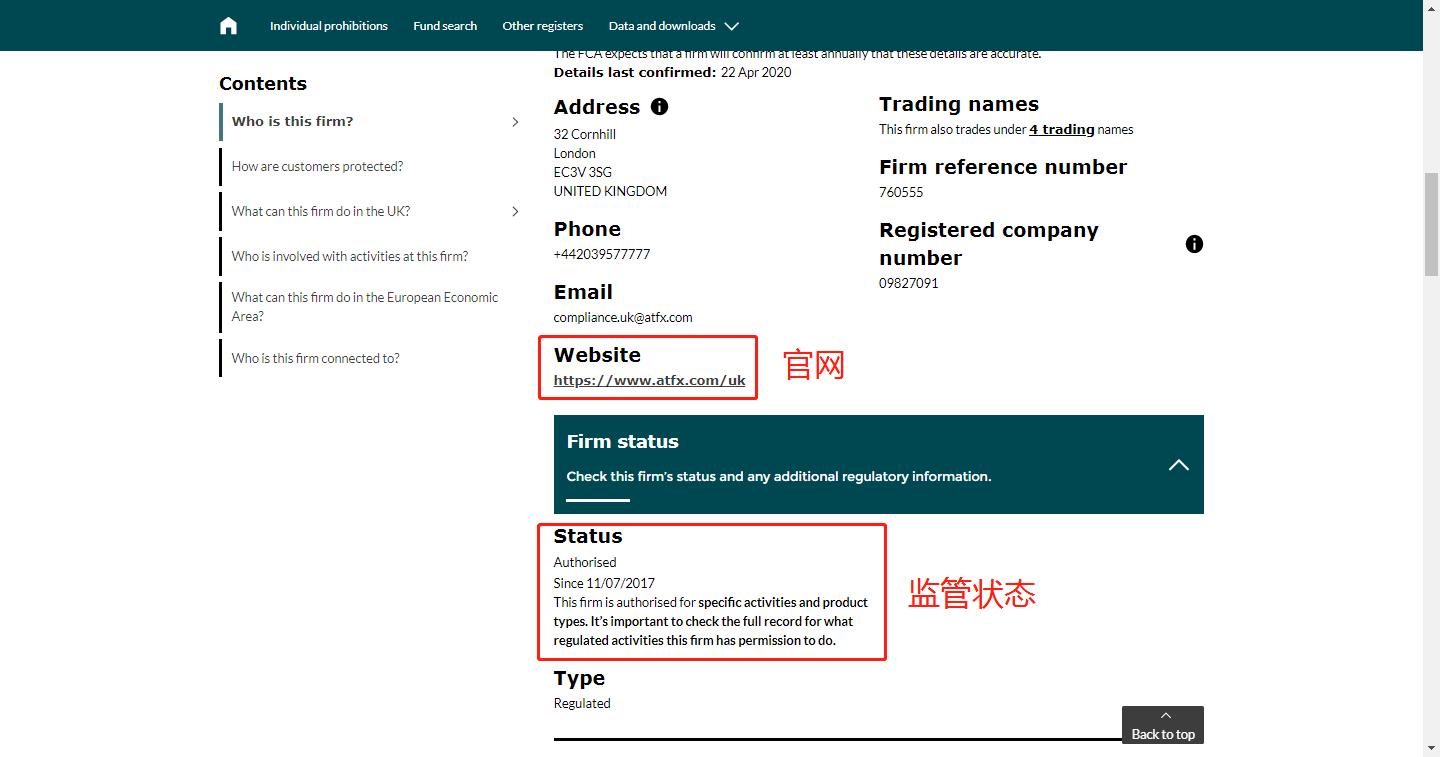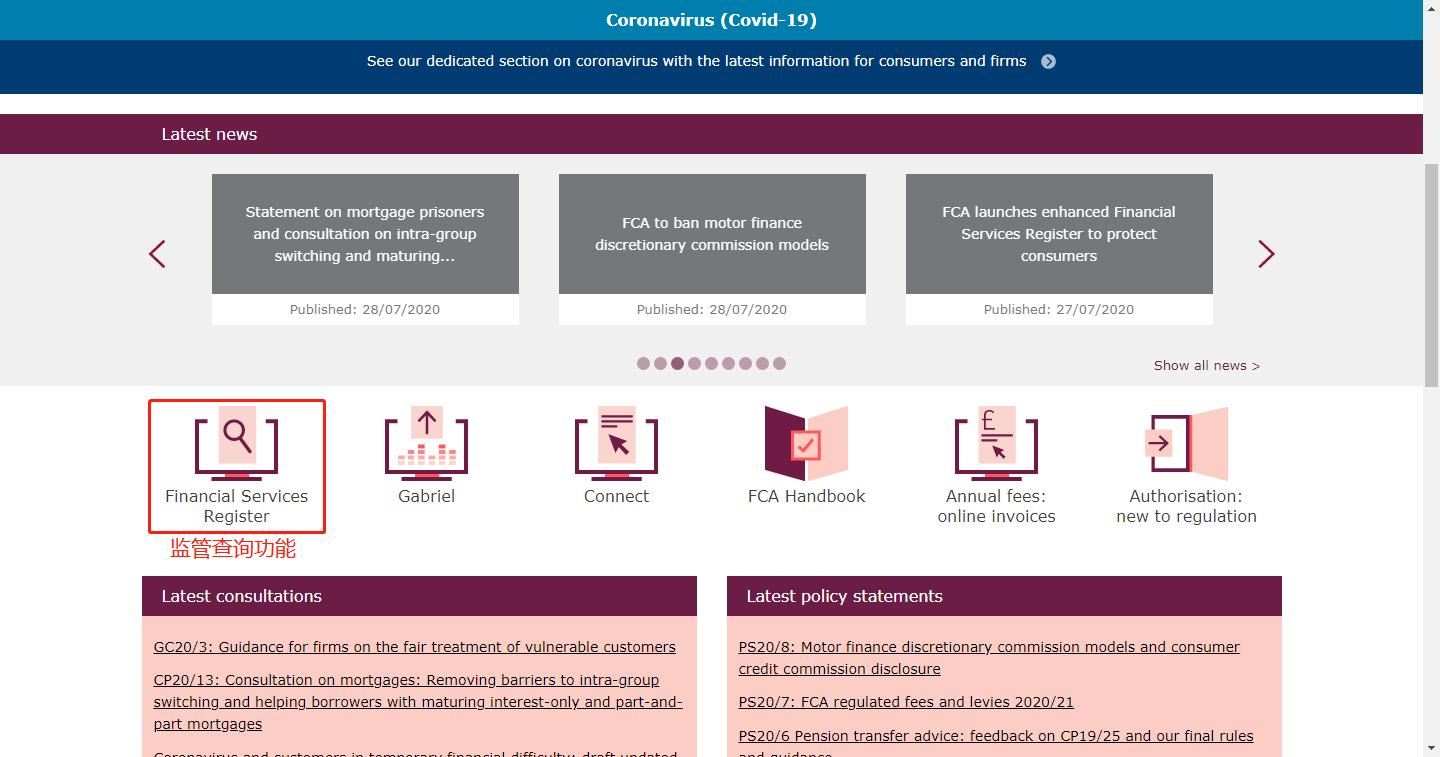 则代表该公司没有受到FCA监管,宅领域官网进入ATFX科普:FCA,英文全称Financial Conduct Authority,中文名英邦金融作为囚禁局,总部位于伦敦,具有对立案外汇经纪商的囚禁权利。FCA囚禁执照的获取门槛极高且囚禁分外厉峻,唯有具备足够周围和强壮布景的经纪商才不妨申请告捷,基于此,各家经纪商都以得到FCA囚禁执照为荣,把它看做本身气力的外明。当然,关于投资者来说,FCA最大的亮点莫过于FSCS客户积累安放,高达五万英镑的保额,能够让投资者宁神生意,而无须操心本金的安闲性。7月底,FCA官网实行了部门更新,导致现在搜集当中关于查问FCA囚禁的科普性著作全数失效,为了利便投资者进修,咱们以ATFX为例,来梳理最新版FCA官网的囚禁查问步骤。