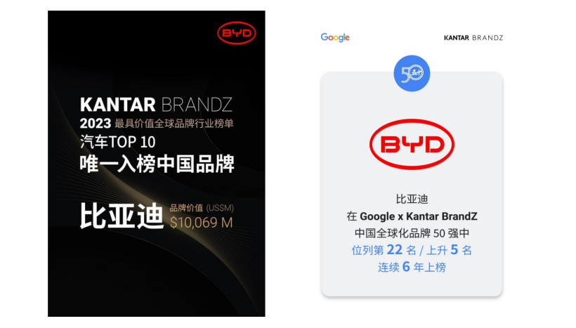 比亚迪入榜「2023凯度BrandZ最具价格环球品牌」汽车品类TOP10