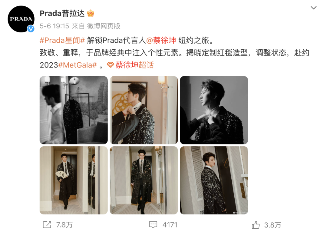 但高奢品牌宛如仍正在阅览。目前,Prada、TAGHeuer泰格豪雅、纪梵希、祖玛珑的品牌微博仍旧能平常搜罗出蔡徐坤的实质。