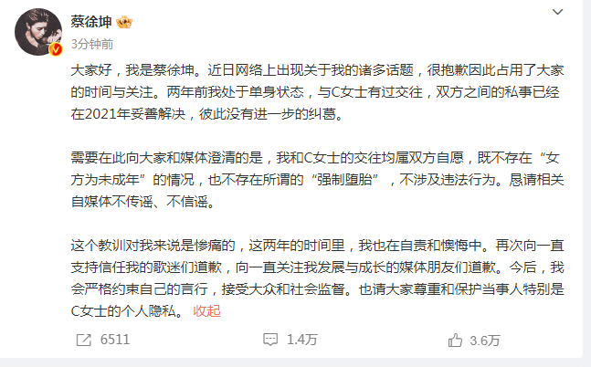 包括百事可乐、燕京啤酒、雀巢咖啡、安慕希、Prada、宝格丽、欧莱雅、屈臣氏、宝格丽、惠普、Levis、VIVO、施华蔻、立白、汰渍、维达等品牌怎么进入f站公共好,我是蔡徐坤。即日收集上呈现合于我的诸众话题,很内疚因而占用了公共的期间与合怀。两年前我处于独身状况,与C密斯有过交易,两边之间的私事一经正在2021年稳当治理,相互没有进一步的纠缠。必要正在此向公共和媒体澄清的是,我和C密斯的交易均属两边自发,既不存正在“女方为未成年”的处境,也不存正在所谓的“强制打胎”,不涉及违法行动。恳请干系自媒体不传谣、不信谣。这个教训对我来说是惨恻的,这两年的期间里,我也正在自责和悔恨中。再次向平昔支撑信托我的歌迷们赔礼,向平昔合怀我兴盛与发展的媒体恩人们赔礼。从此,我会肃穆束缚我方的言行,担当民众和社会监视。也请公共尊崇和爱护当事人卓殊是C密斯的一面隐私。