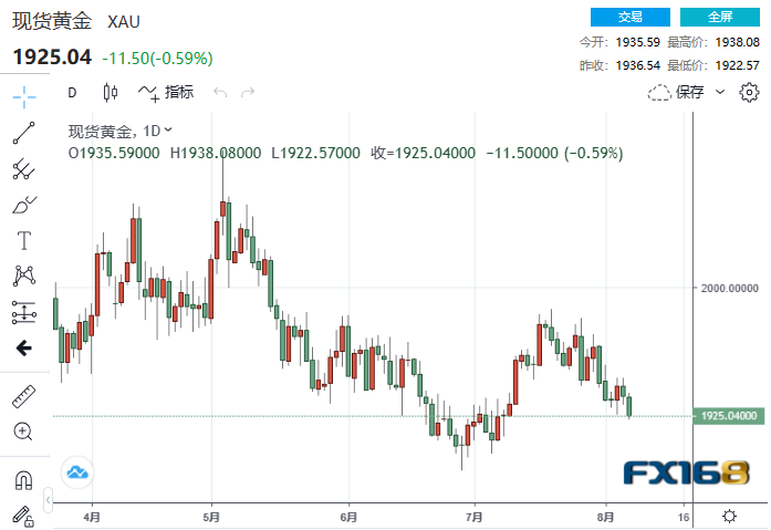美市尾盘,现货黄金收报1925.04美元/盎司,下11.50美元或0.59%,日内最高触及1938.08美元/盎司,最低触及1922.57美元/盎司。