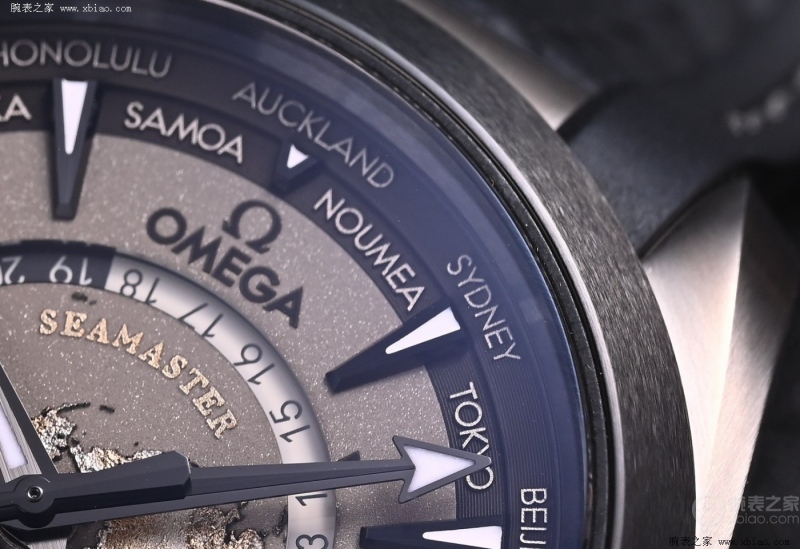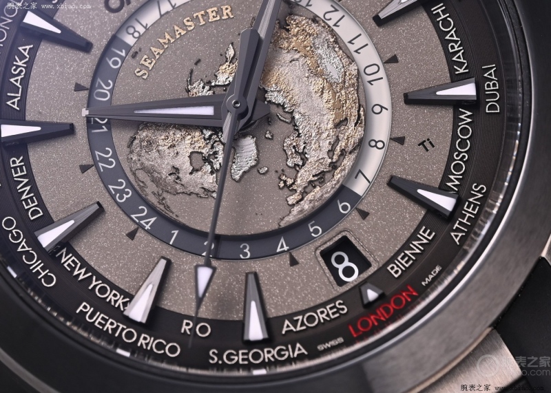 平常来说,宇宙时腕外带日历的不众,带日历能构造均衡的就更少,而这款Aqua Terra宇宙时不光6点位日历构造极为和睦,更能依靠89机芯原生的时区速调效用竣工日历双向速调。颜值方面,欧米茄此次同样是正在5级钛材质的内外盘上,采用激光烧蚀本领,琢磨出了从北极俯瞰地球的风雅图案,况且内外盘与外镜分外为拱形打算,以此模仿出地球的弧度。越发是钛合金外款,其扫数黑灰色外盘一齐采用激光本领打制,其颜色、小工夫度以及都邑名称等元素不光没有采用任何转印的格式,就连“LONDON”字样的赤色漆面也是通过手工工艺制成。通过这一系列的杂乱工序,这款Aqua Terra宇宙时俨然依然从一只器械外晋升到了艺术腕外的维度。