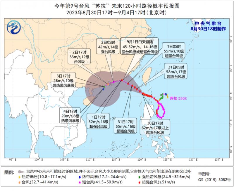 【导语】:中焦点现象台估计苏拉有恐怕于9月1日日间正在广东惠来到香港一带沿海登岸(强台风级或超强台风级,45-52米/秒,14-16级),也有恐怕正在广东东部近岸海面向西偏南目标转移。