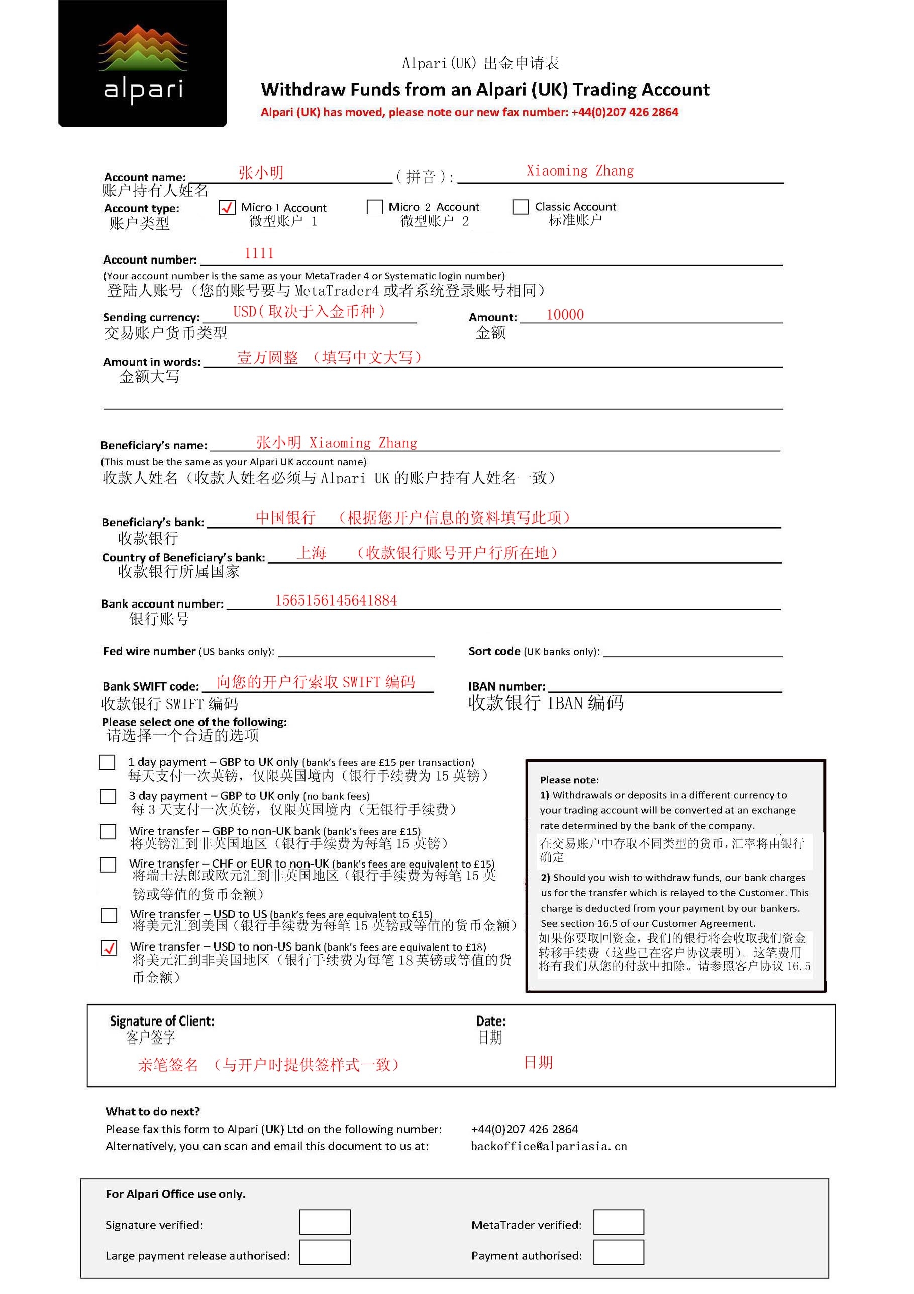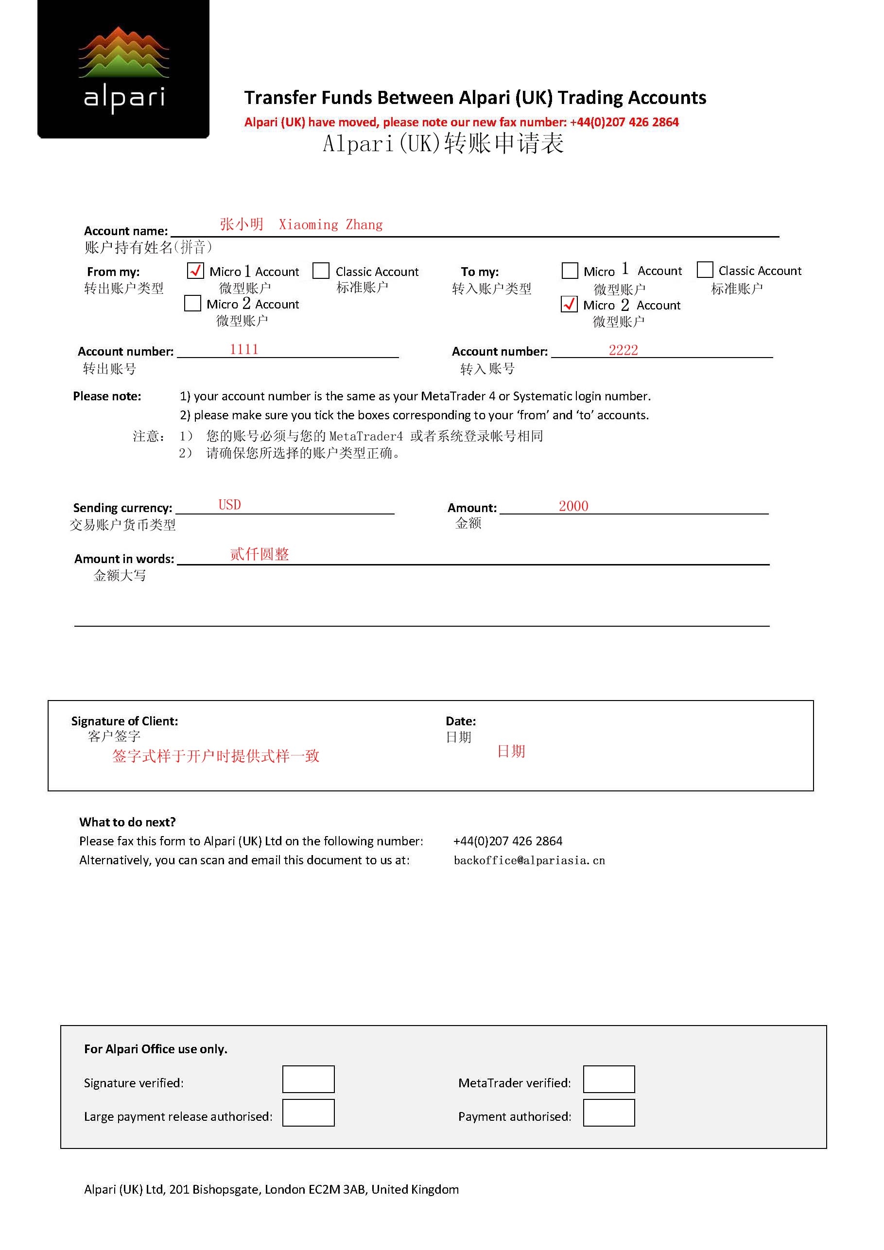 按照你开户时所填写的开户币种拣选相应币种的汇款账户,然后入金。alpari现有三种入金形式: