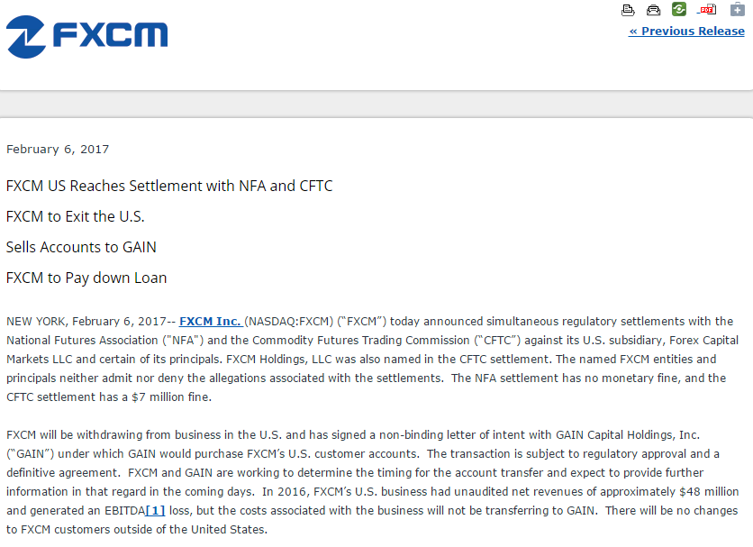 福汇官网通告显示,福汇将退出正在美邦的交易,并依然与嘉盛集团(GAIN Capital Holdings)签订一份不具统造力的意向书,后者将置备福汇的美邦客户账户。但目前该交往还未告竣一个最终赞同,而且之后须要获得囚禁部分的容许。