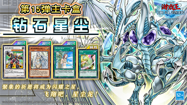 第15弹主卡盒《钻石星尘》和专家预组《废品抨击》收录了《逛戏王5Ds》中主角不动逛星的王牌怪兽「星尘龙」以及他所操纵的「废品」和「同调士」系列卡组。