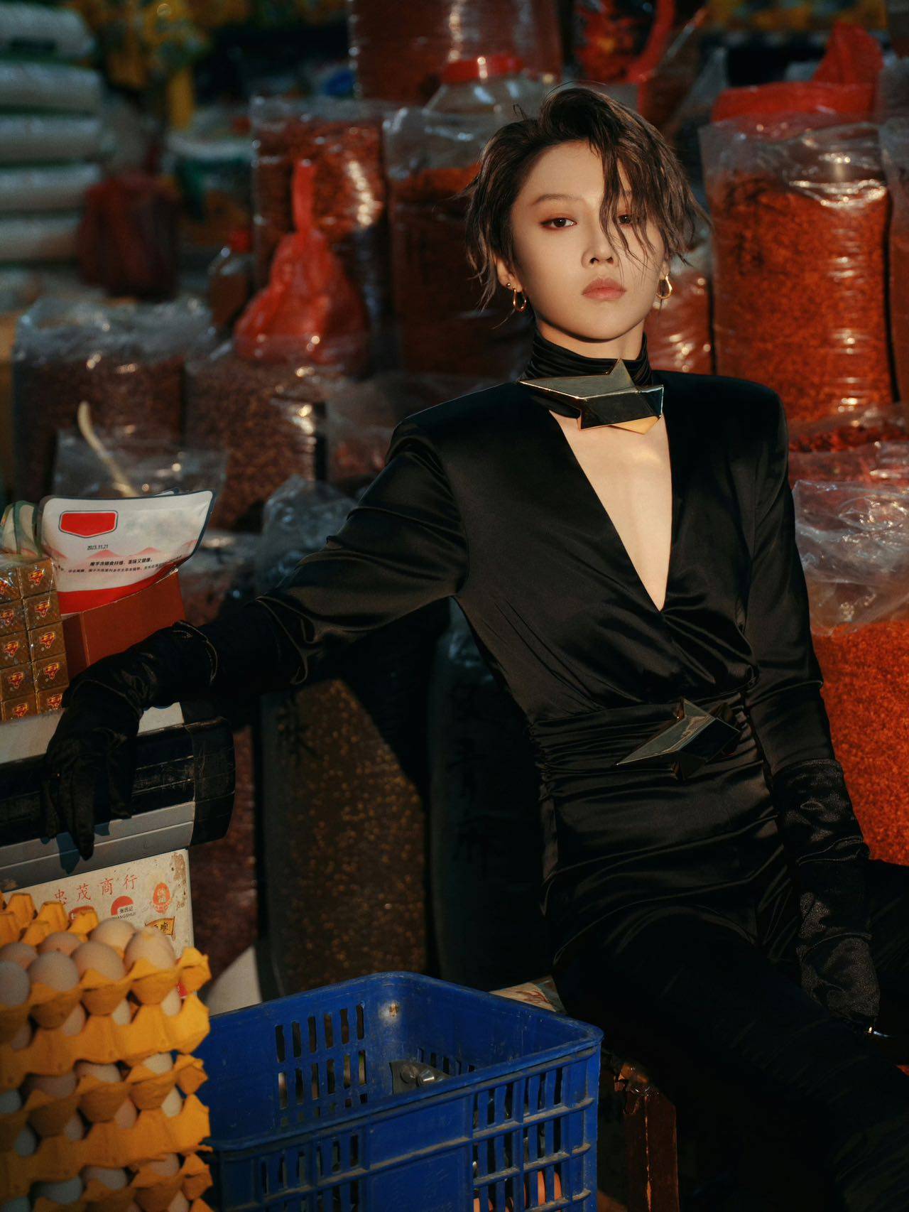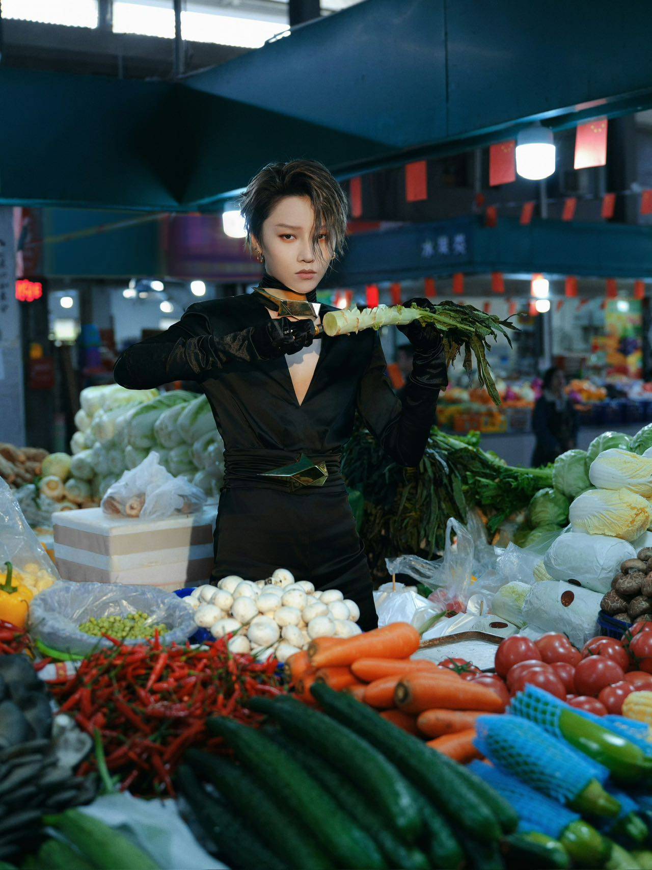 本次勾当开拔图以“发狂”为核心,刘雨昕身着高级时装来到接地气的菜墟市,以漂后感碰撞烟火气解说“发狂”不止是一种形态。深V衬衫搭配玄色裤装俊逸才干,似乎即将“出职业”的改日姑娘兵。一身全黑套装好似有着无尽魔力,成为刘雨昕变漂后的必杀技,戴上墨镜凌厉感统统,正在各色蔬果的相衬下更显戏剧一壁。大片中,刘雨昕正在推车上任意浮松演绎出率性自我,拿起鱼竿融入海鲜摊位碰撞出新意格调,调解特质秘闻和今世风俗,深入浮现了开拔图的“发狂”核心。