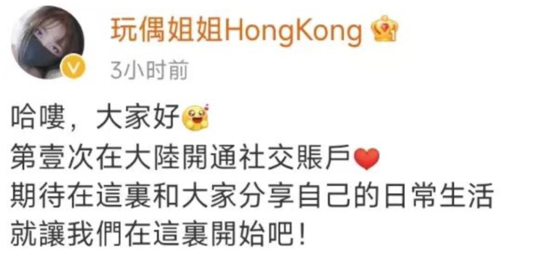原来,玩偶姐姐固然名字中带有“HongKong”,但她压根就不是香港人。