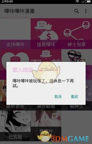 2、这时间点击“打消”,这个提示窗口就会消亡,这时间你可能选拔你念要看的漫画,不过点击之后这个提示毛病的窗口又会展现,重试也没有效