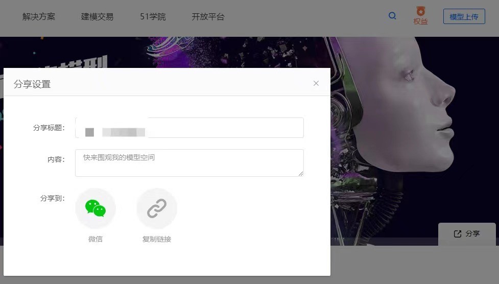 上传后的模子,修模师可对其模子资产举办分类拾掇、加自界说LOGO、自界说加载封面等特性化树立,以及模子内嵌显现照料。修模师们也可能将其正在平台上编辑好的模子正在私人模子照料空间内举办存储。每个模子可天生一个显现链接,只须要通过模子链接分享,3D修模师们就能将己方的模子作品分享显现给其他人,而用户可及时查看动态立体的、可交互的3D模子,特殊利便。