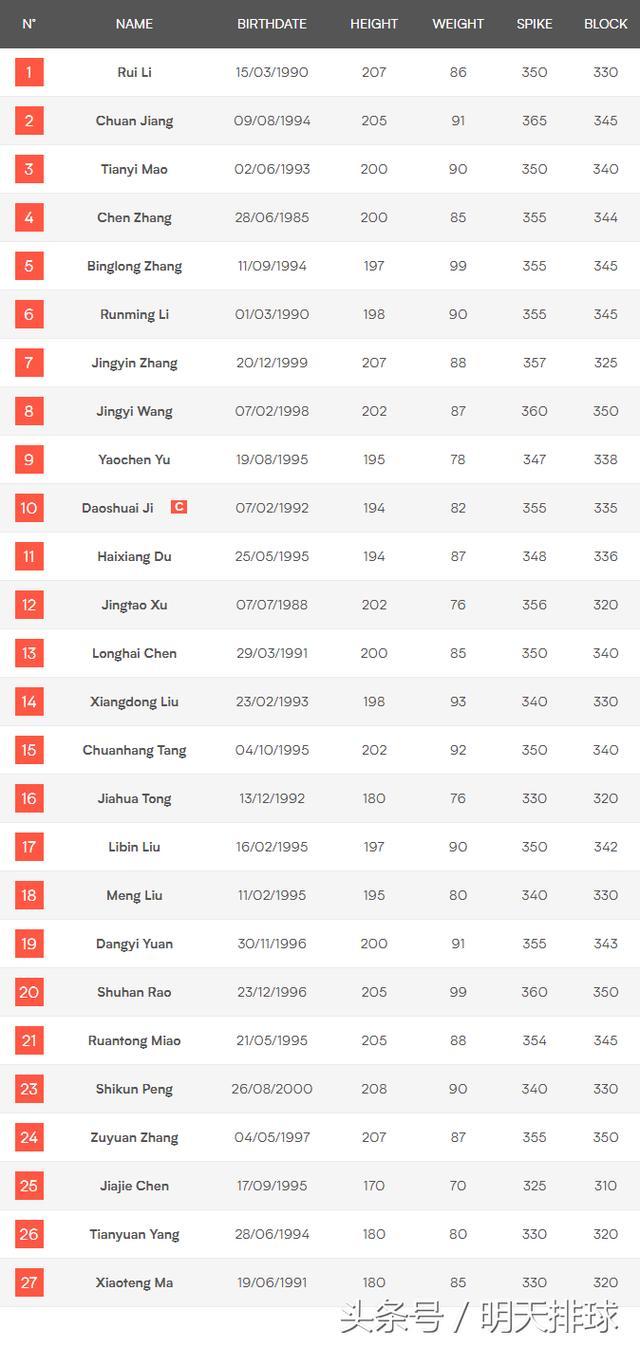 北京年光昨天(5月2日),邦际排联天下排球联赛的官网刊发了本年插手逐鹿的中邦男排26人的报名名单。整个是: