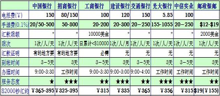 中邦邮政正在部门区域开通了邦际汇款营业,2000美金以内汇费为12-19美金,比银行电汇省钱,但仅给与美元汇款,手续费也务必美金付出。