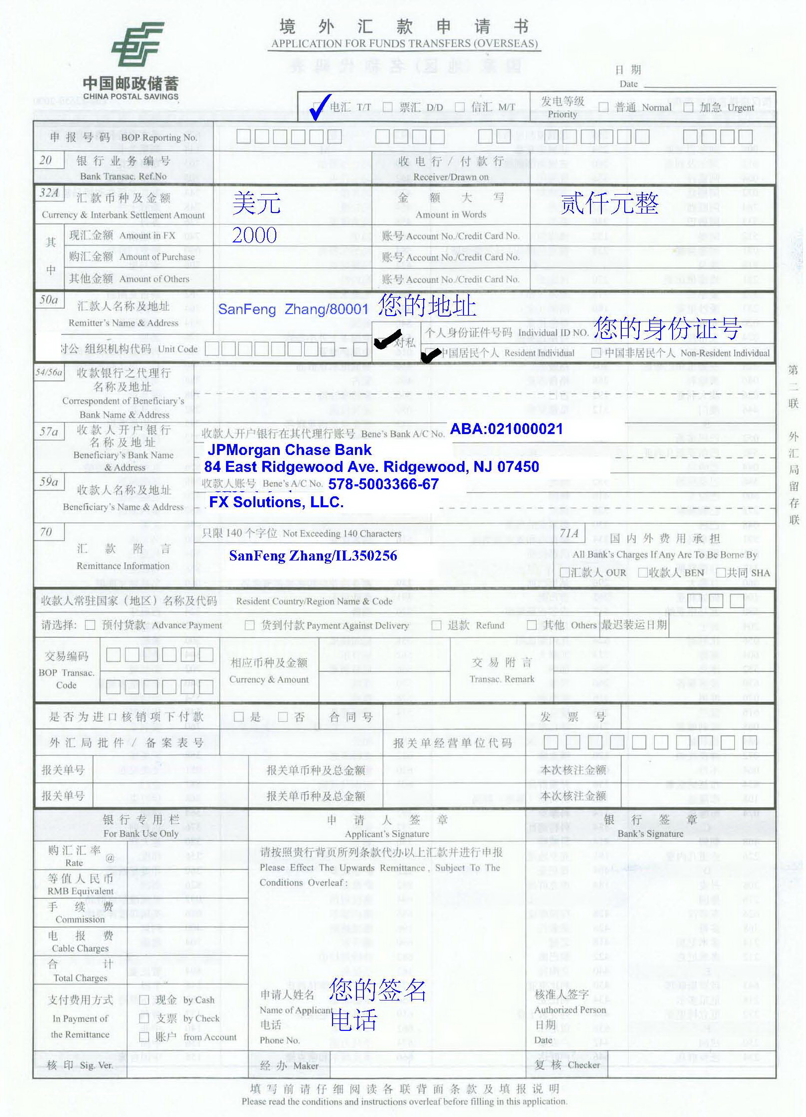备注: 以上样本没有签字,以是,你填写完之后,须要正在签字处所后填写签字。