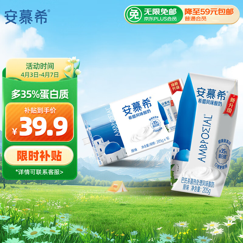 伊利安慕希希腊风韵早餐酸奶原味205g*16盒牛奶整箱众35%乳卵白礼盒装