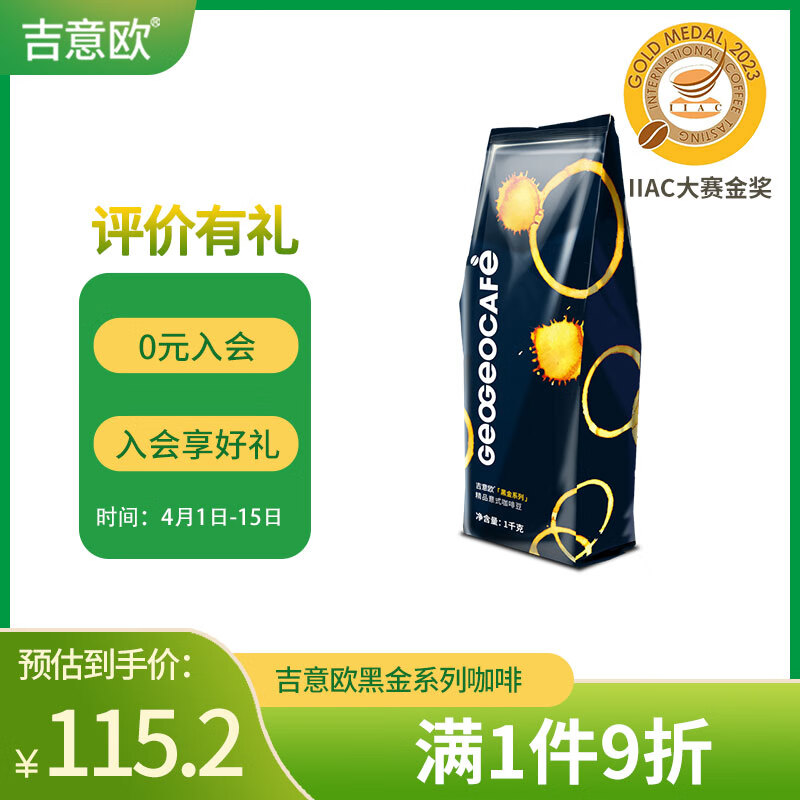 吉意欧IIAC金奖咖啡豆1kg黑金玄色圆舞曲精品意式拼配阿拉比卡浓重醇厚