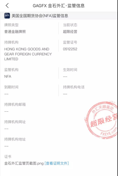 GAGFX金石外汇所持有的美邦(NFA)执照,为平淡金融执照,并没有从事外汇经纪交易的权限,属超局限规划。