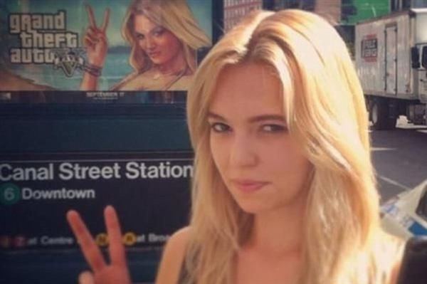 据知道,《GTA5》封面女郎是以模特Shelby Welinder的气象为参考打造的,她曾显露我方是《侠盗猎车手》系列粉丝,很乐意出演《GTA5》的封面女郎。