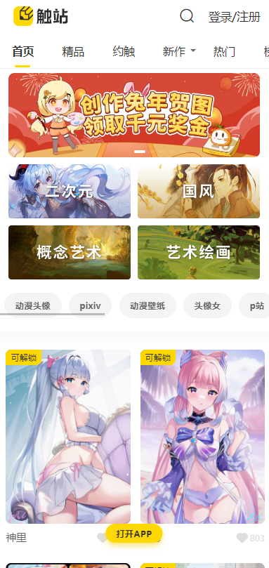 触站目前有入驻画师10000+,产出越过500W+的二次元插画,是个邦内画师作品的分享网站,思要访候pixiv的中邦官网可能访候触站,触站的官网网址是:
