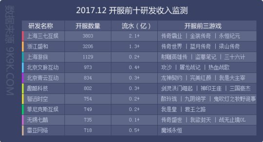 点评:本月开服前十研发流水收益情形与上月比拟蜕变不大,个中上海三七互娱本月流水收益有所增涨,打破了2.1亿;趣酷科技则仰仗新逛《剑灵洪门振兴》的帮阵,流水收益也有所上升,打破了3切切大合。
