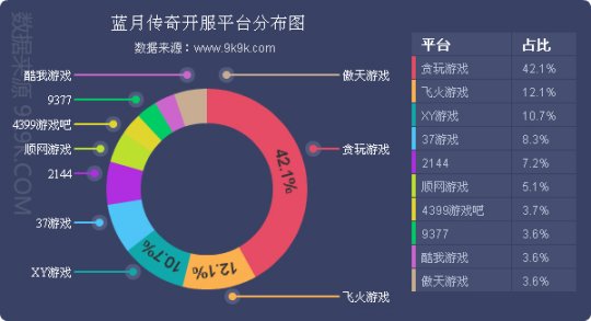 点评:本月《蓝月传奇》开服总数有所裁汰,但整个开服场合仍较为安闲,其正在贪玩逛戏的开服占比进一步上升。新增分散占比平台9377、酷我逛戏、傲天逛戏,开服频率均为1服/天。