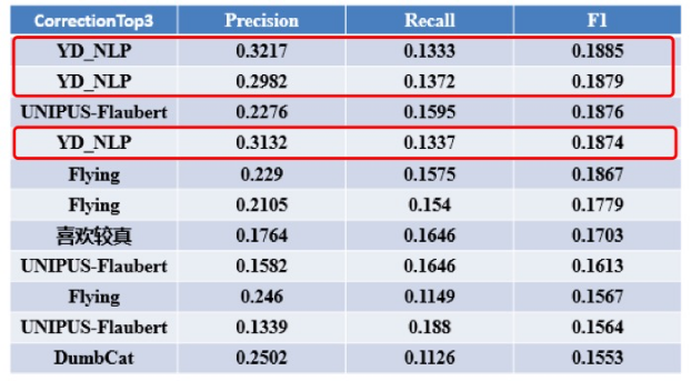 值得细心的是,有道AI团队正在本次竞赛中的语法纠错项目中,正在CorrectionTop3和CorrectionTop1归纳目标(F1)分辨取得第1和第3名的状况下,对应的Precision(无误率)要鲜明高于其他参赛队列。这正在教训实行场景当中对用户体验更为紧张。