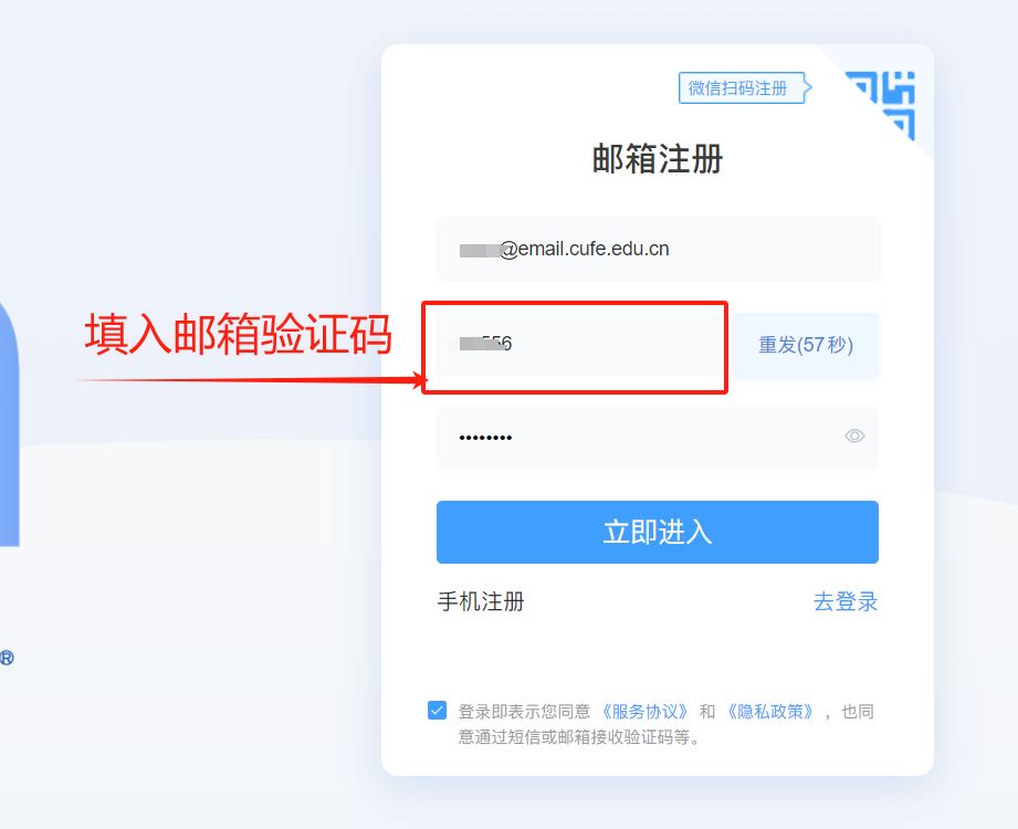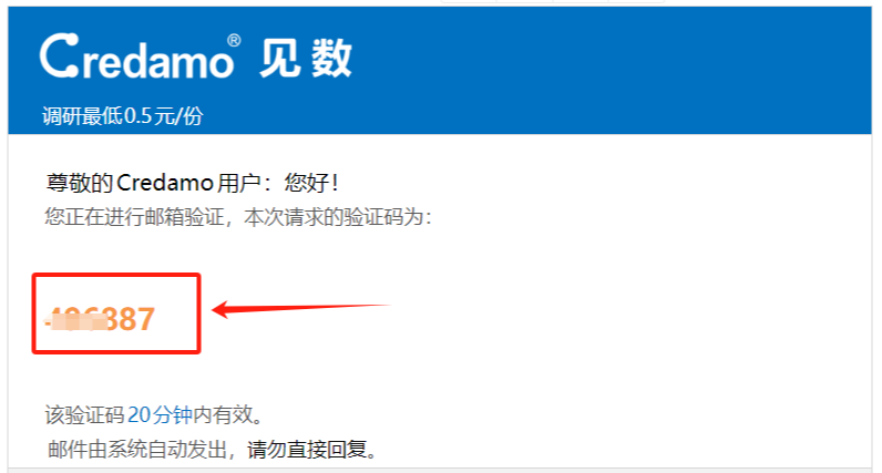 (2)新用户注册时,Credamo睹数将给学校邮箱发送验证码,用户可登录学校邮箱查看并输入验证码,即可注册并升级胜利。