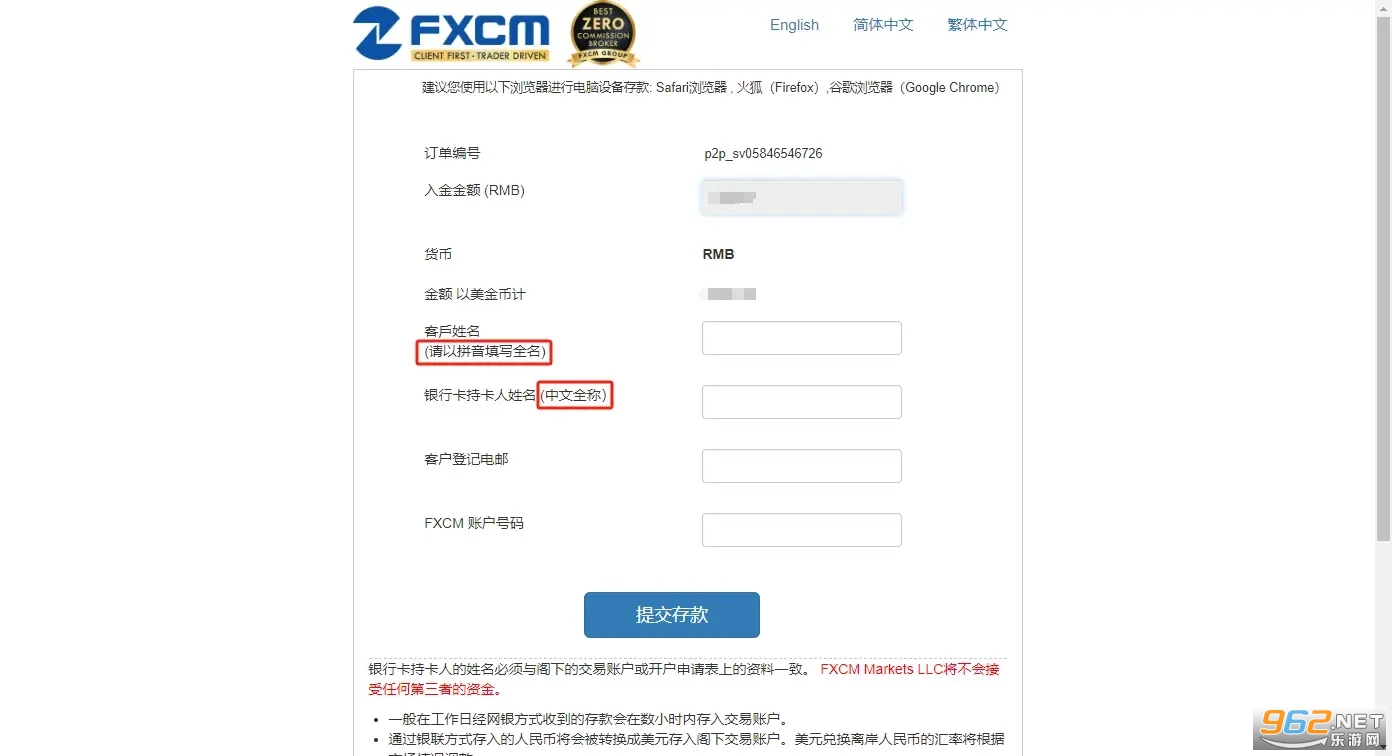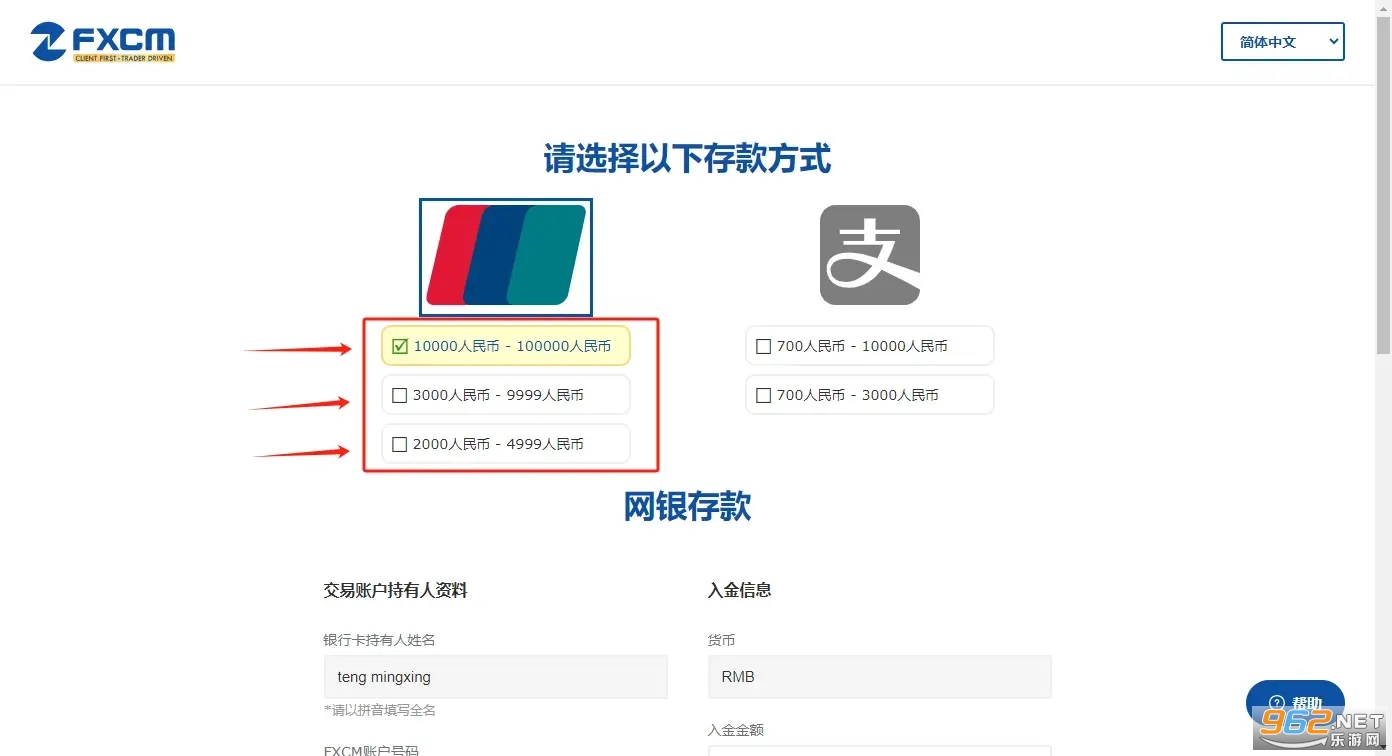 收款银行新闻的画面,有或者差异,只须您是通过MYFXCM点击【网银存款】而取得的新闻,就可能宽心入金的。