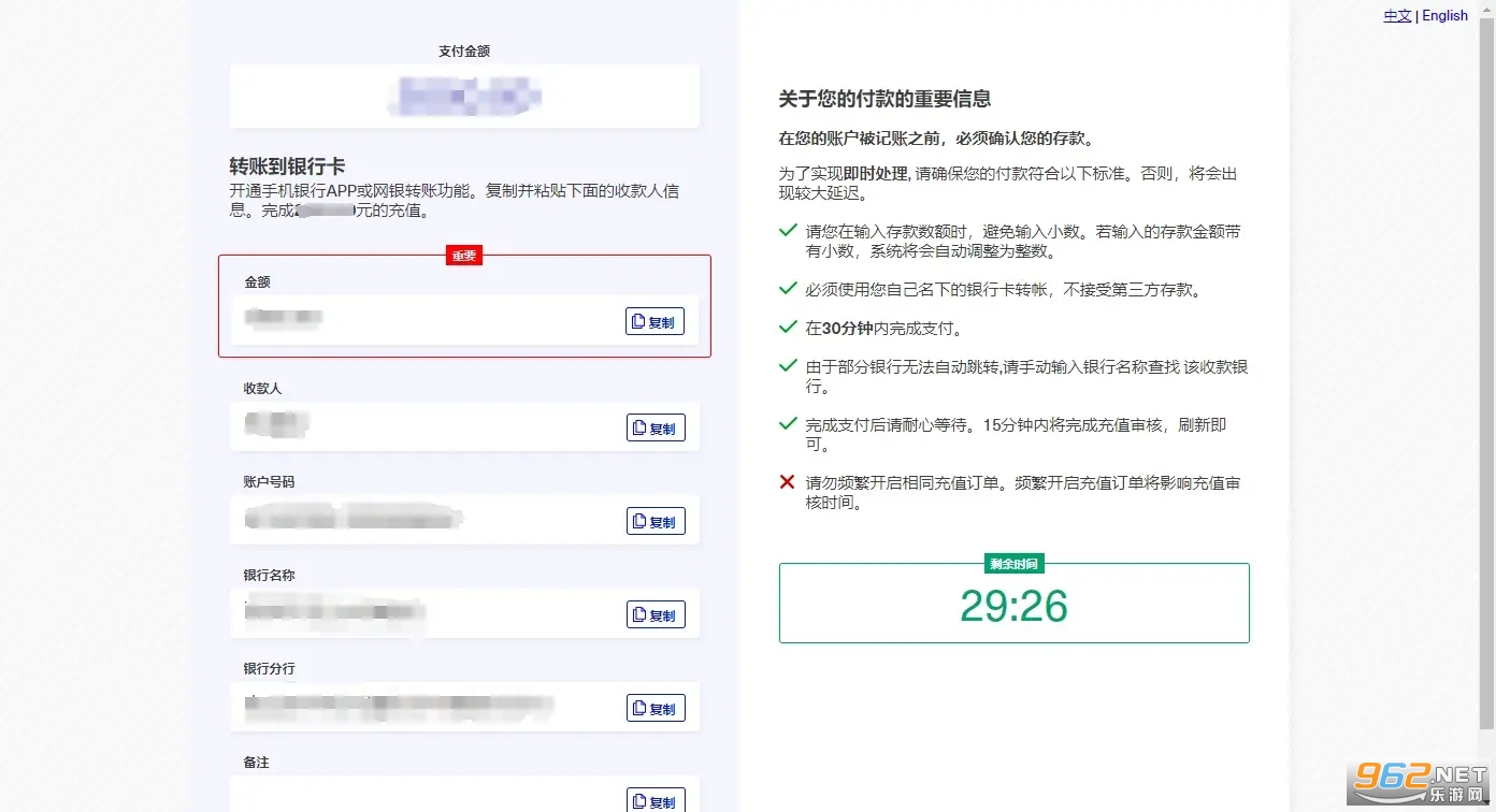 实质转账金额需与此页面的金额相配合,不然或者会导致到账延迟,以至须要退款。