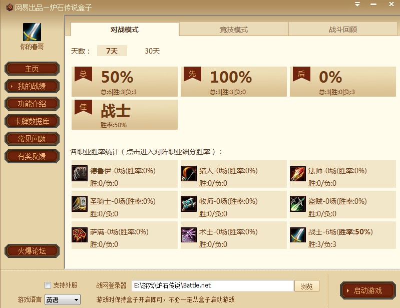 玩家胜率统计全主动采集您的战役记实,及时反应您所选职业、对阵职业的胜率。赢输场次,职业周到,尽正在担任。