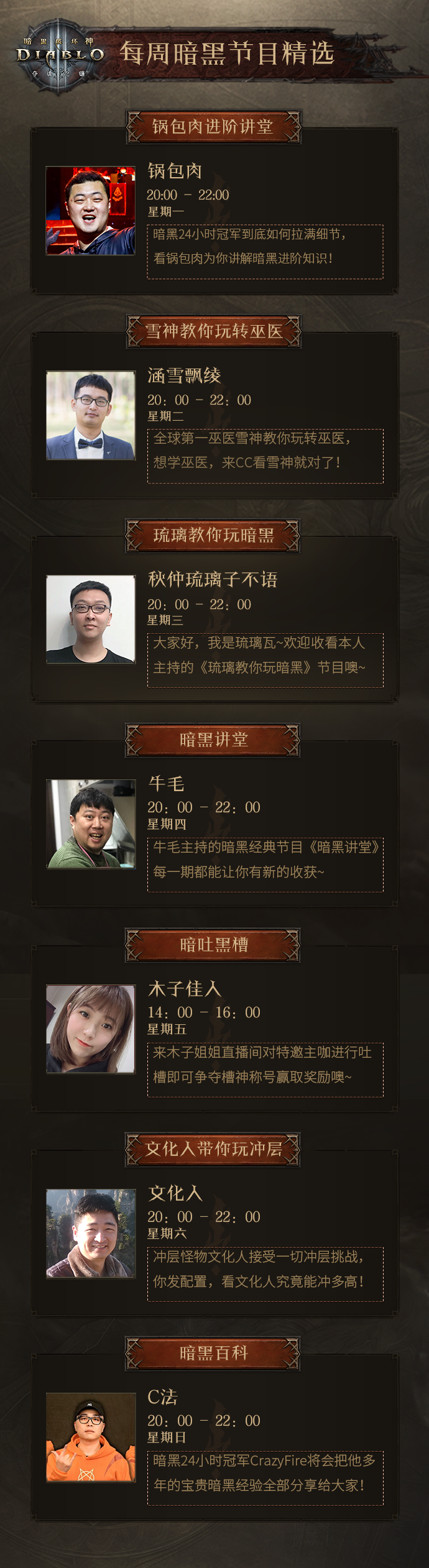 日曜日(5月3日):20:00《暗黑百科》,本周CrazyFire将会带来大秘境精英词缀及BOSS详解,记得来收看研习噢!点击赶赴直播间