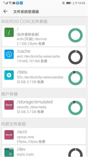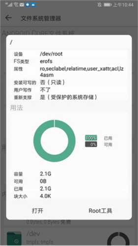 3、进入文献体系统制器界面,席卷差异类型的文献体系、用户存储等音讯,用户可依据需求掀开或者操纵Root东西,