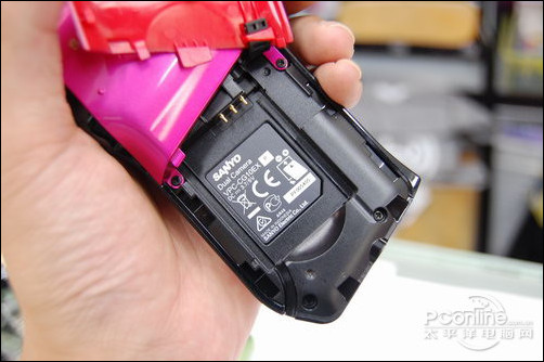 三洋CG10采用扔光工艺的塑料外壳,全体光可鉴人,油滑可爱。一切机身上简直找不到十足的直线条,眼中所睹都是向种种角度延长开去的弧线。