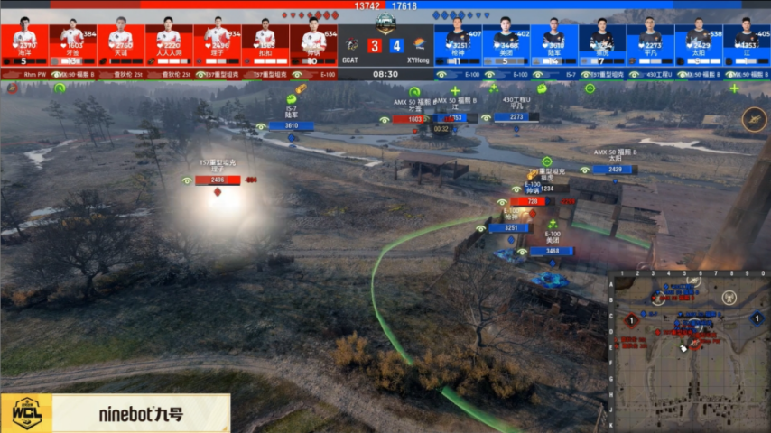 第八局开场GCAT操纵窥察身手点亮XYHong的六台车,XYHong稳步促进至厂区并越过旗圈实行前压,GCAT不绝被挤压出厂区,两边于厂区外产生近战绞肉,固然相易人头数目相通,然而正在混战中XYHong依赖组织和集火设立筑设起血量的大上风,GCAT无力再实行正面临抗,被逐一收割,最终XYHong告成拿下本局获胜。
