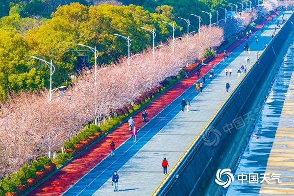 浙江杭州滨江区闻涛途的樱花跑道,为人们供给了骑行赏樱的新玩法。跑道沿线众株樱花树,人们可选拔骑行、跑步等办法玩耍,赏景磨炼两不误。