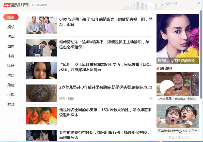 用户正在Flash升级修复或版本更新后会跳出FF簇新事的弹窗或跳转至资讯网页,丰裕了一局限用户的阅读体验,但也有效户深受其扰。FF簇新事及跳转网页都是Flash资讯实质的构成局限,勉力于为每位用户供应优质的资讯供职,用户可对感兴味的实质举办转发或者评论,也能够通过右上角菜单栏举办筑树,采选近期不弹或不再弹出,操作便捷界面新颖畅通,带来纷歧律的应用体验。