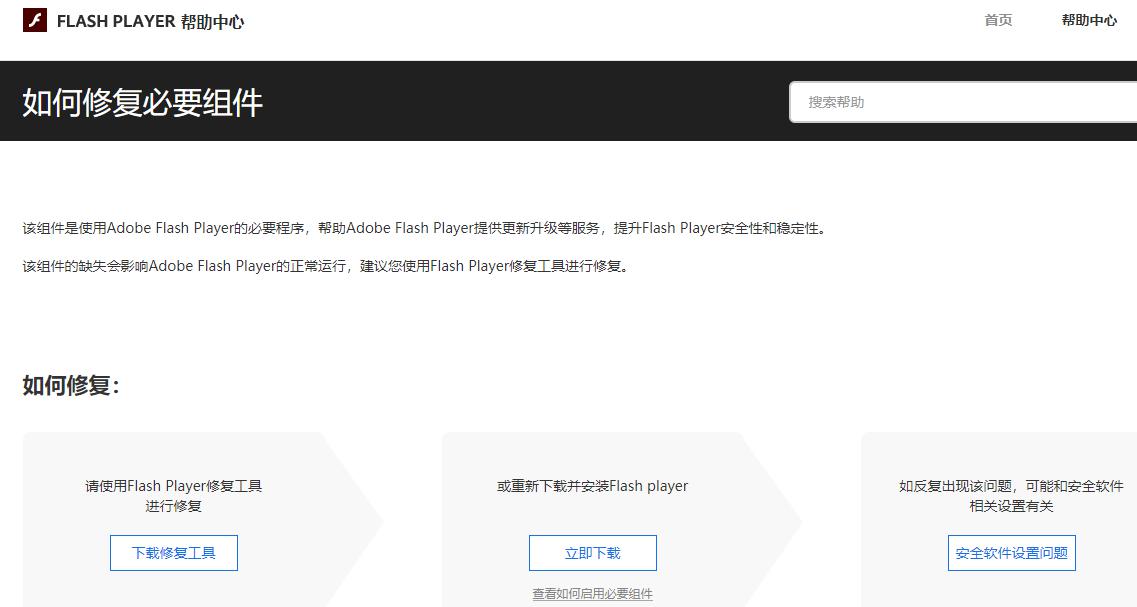 登录Flash Player助助中央,已装置Adobe Flash Player的用户可通过Flash Player修复东西助助处分组件缺失题目;若此前并未装置Adobe Flash Player的用户能够下载并装置最新版本的Flash Player软件并确保Flash Helper Service需要组件的平常运转。当采选修复的用户正在修复后仍无法平常运转,则能够与安详软件的筑树合连,这功夫能够遵守Flash中邦官网供应的操作环节查看安详软件的筑树,反省是否存正在安详软件禁用启动组件的形势,并确认Flash Helper Service组件未被删除或摧毁。