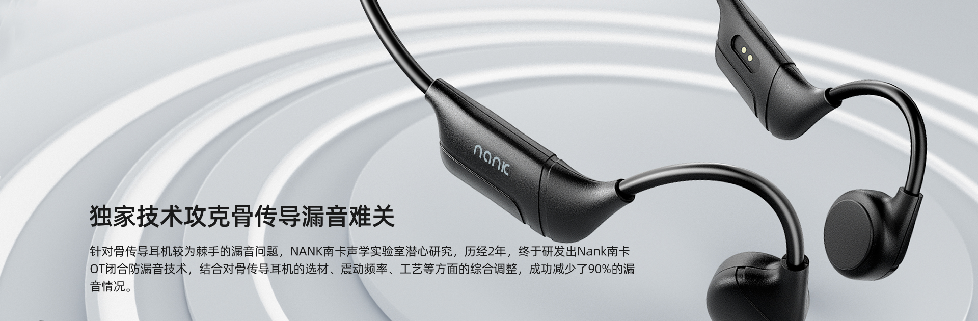 针对骨传导耳机较为棘手的漏音题目,NANK南卡声学测验室潜心切磋,历经2年,结果研发出Nank南卡OT闭合防漏音时间,集合对骨传导耳机的选材、惊动频率、工艺等方面的归纳调剂,胜利裁减了90%的漏音情形。
