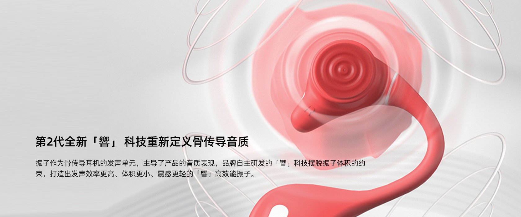 14mm的「響」高效力振子,音质可媲美18mm的守旧振子,所以完毕体积更小的骨导振子,相较上一代体积裁减17%,以更轻速的样子发声