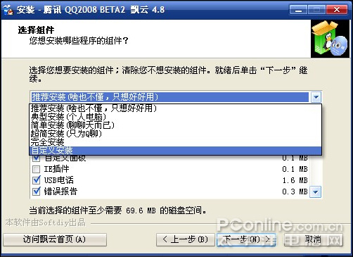 飘云QQ的组件选项,额外充分。咱们可能很容易地依据内部的提示,找到适合本身的安置形式。而过程咱们的测试,软件并没有正在安置流程中,擅自向体例中增添任何第三方组件。同时,IE首页及启动文献夹也很平常。