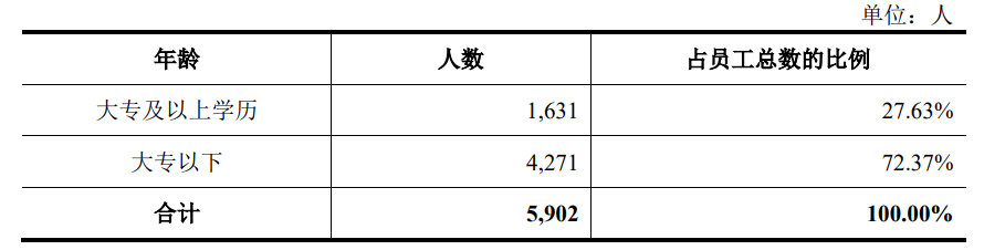截至2021年6月底,康冠科技正在册员工共计5902人,个中大专以下学历的员工有4271人,占公司总员工人数高达72.37%。