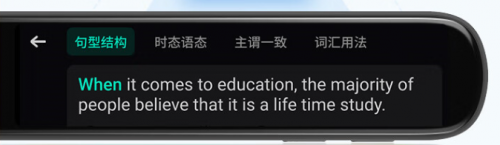 扫描全数句子,科大讯飞AI翻译笔P20 Plus不光会给出翻译外,同时还会给出时态、语态、句型布局等语法新闻,让孩子正在分析中,抬高制句才略。