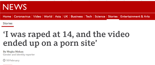 早正在本年岁首,BBC就曾报道过一位女性挖掘我方14岁时际遇强暴的视频,悍然映现正在了P站上面。