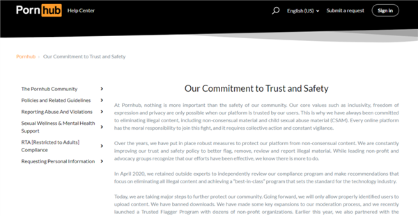 除了主动地下架视频以外,P站也显示会入手下手珍视不法的性暴力事宜。并且还号召Facebook、TikTok之类的收集平台一块自查。
