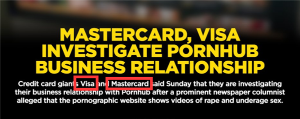 随即,环球著名线上支出体例VISA、万事达、Paypal接踵放弃为Pornhub供给支出供职。