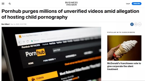 正在这篇报道里,揭发了P站众年来因为审核疏漏,存正在豪爽与肆虐儿童、不法偷拍、种族主义合系的视频。