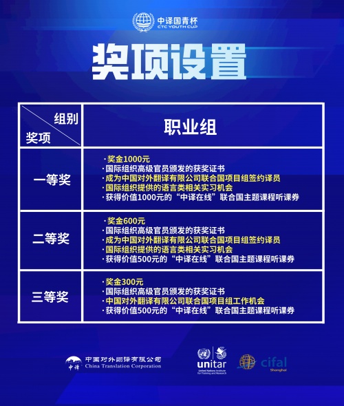 “中译邦青杯”大赛悉力于选拔具备邦际视野的优异青年翻译人才,撑持共同邦可继续兴盛对象等重心理念正在中邦的普及和扩大,并为中邦措辞任事优异人才供给显示和输出的邦际化平台,提倡青年人和措辞任事从业人士体会、走近邦际构造。