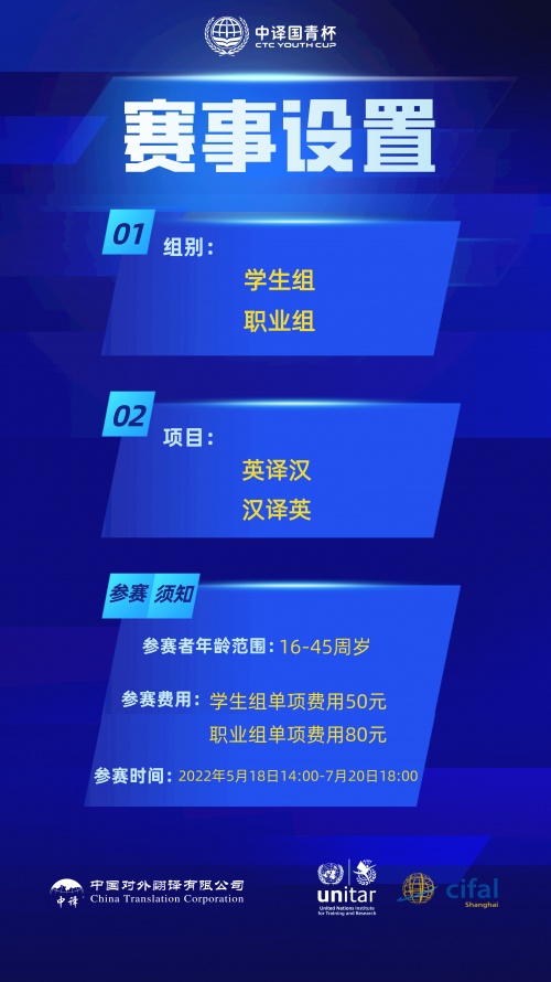 2022年第三届“中译国青杯”国际组织文件翻译大赛正式启动报名以语为桥,以译为媒,2022年第三届“中译邦青杯”邦际构造文献翻译大赛于5月18日正式启动报名!